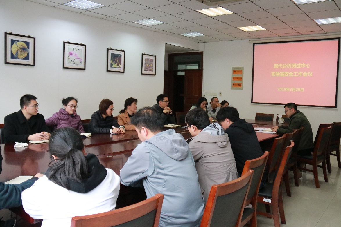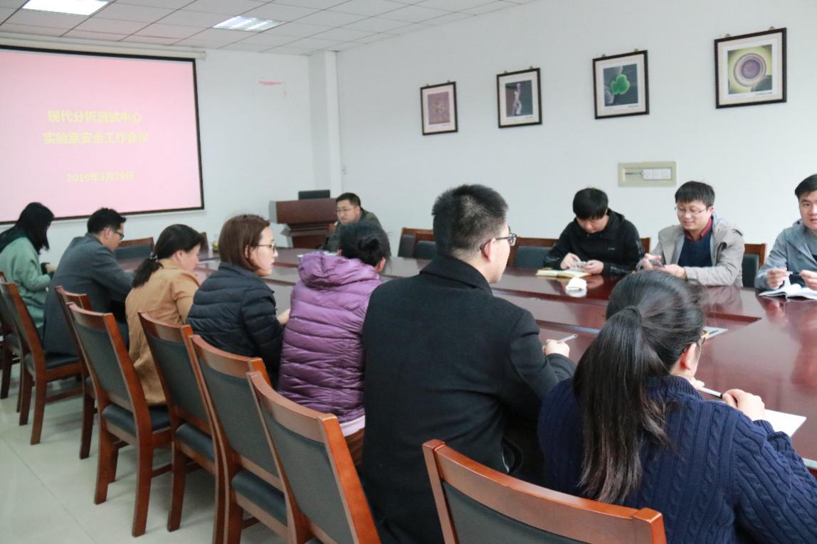 3月29日下午,现代分析测试中心全体人员在60230召开实验室安全工作会议,会议由孟国忠主任主持。 会上,孟主任首先传达了全省学校安全工作视频会议主要精神。 孟国忠主任要求全体人员要高度重视实验室安全,严格落实实验室安全主体责任,坚持"谁主管、谁负责,谁使用、谁负责"的原则。加强日常安全教育,提升安全意识。尤其是加强易燃、易制爆、易制毒化学品的管理,切实做好实验室的安全工作。中心将在各实验小组自查的基础上,进行安全大检查,确保安全工作不留盲区,整改到位。 中心始终把安全放在所有工作的首位,今后将更加注重安全管理与安全责任感的培养,切实做好安全工作。